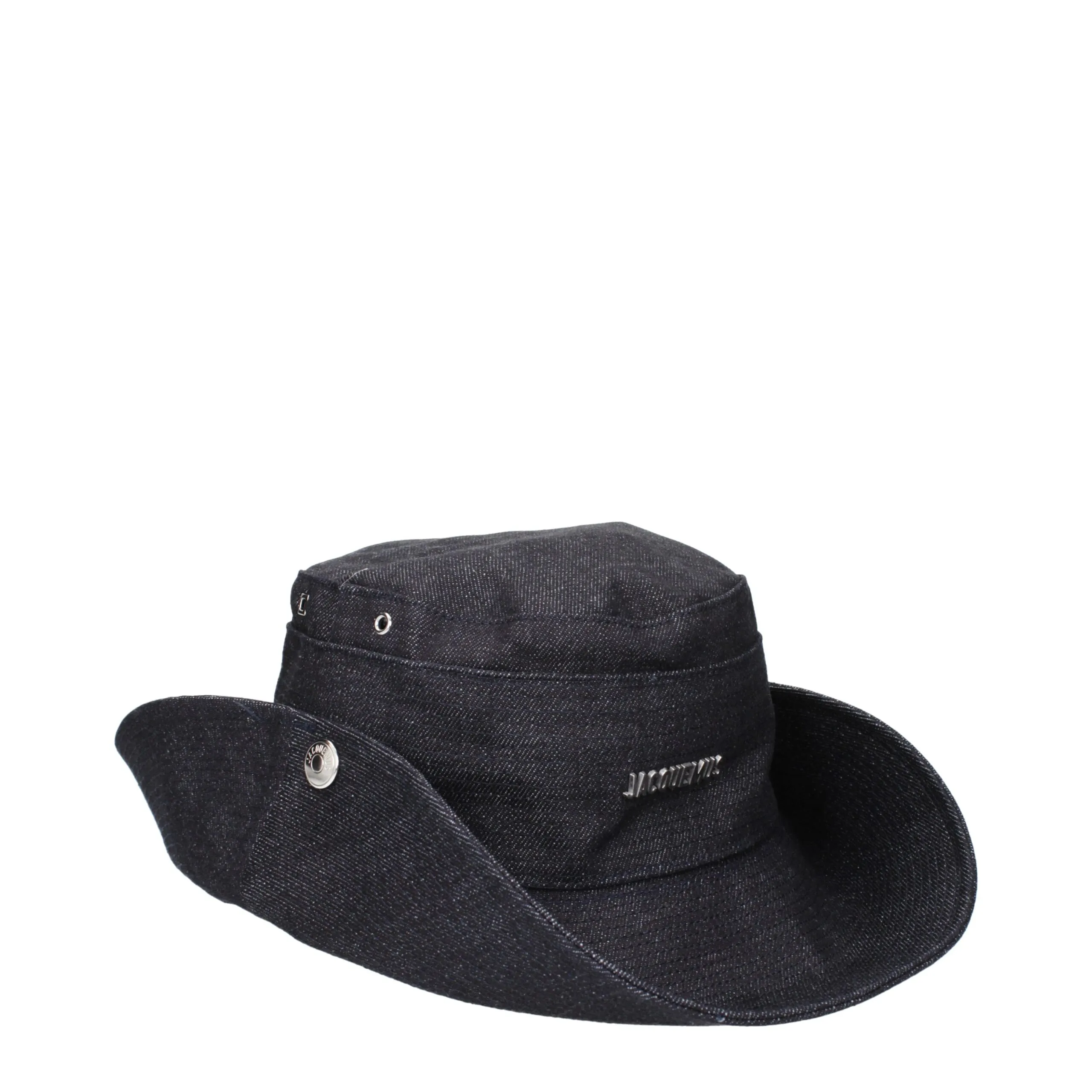 The product with MPN 255AC7211782380 and code F84954 cotton in blue is a hats designed by Jacquemus. It has features like front logo, side buttons.