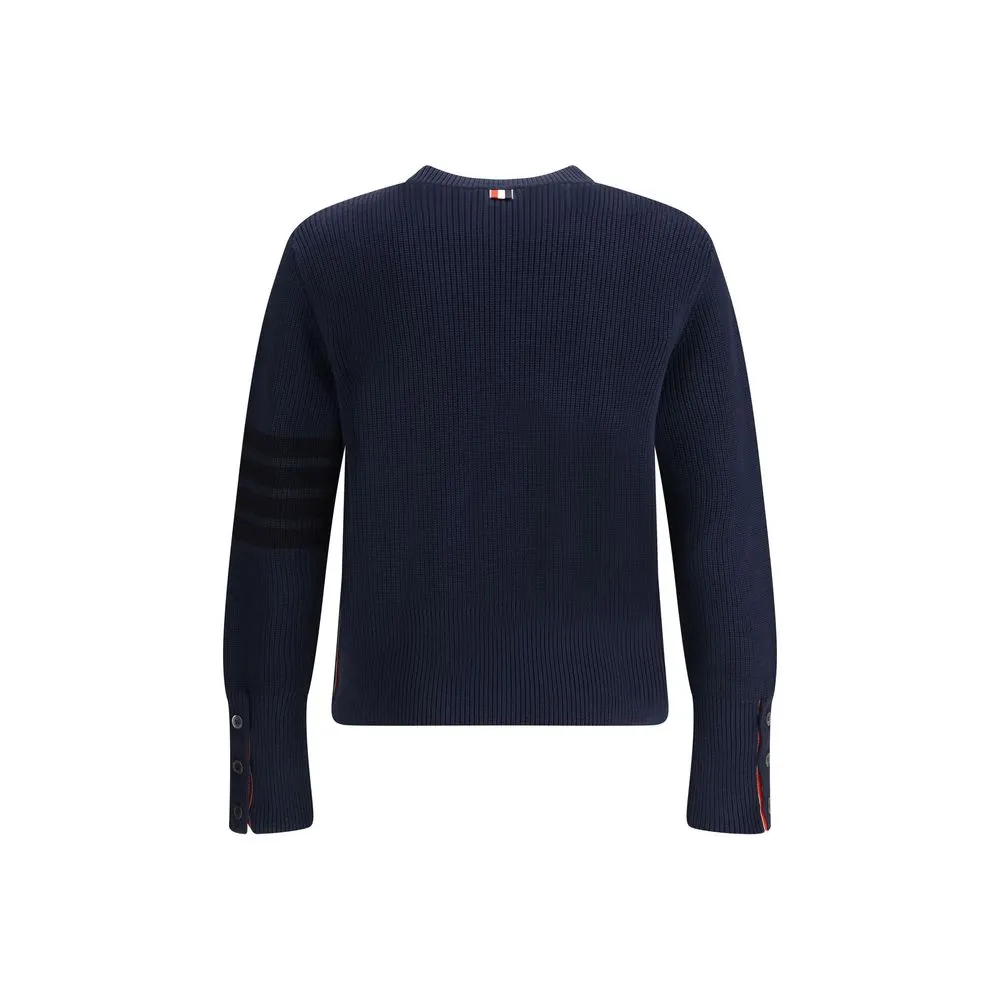 The 4-Bar Sweater by Thom Browne presents essential elegance through a cotton construction that combines softness with a precise graphic identity. The signature four stripes define the sleeve with an instantly recognizable touch, while the round neck shapes a clean and balanced line. The buttoned cuffs introduce a subtle sartorial detail that enriches the design without disrupting its refined simplicity. The Sweater reflects Thom Browne’s distinctive character through a sophisticated, contemporary presence made for those who appreciate iconic pieces with functional and curated style.
