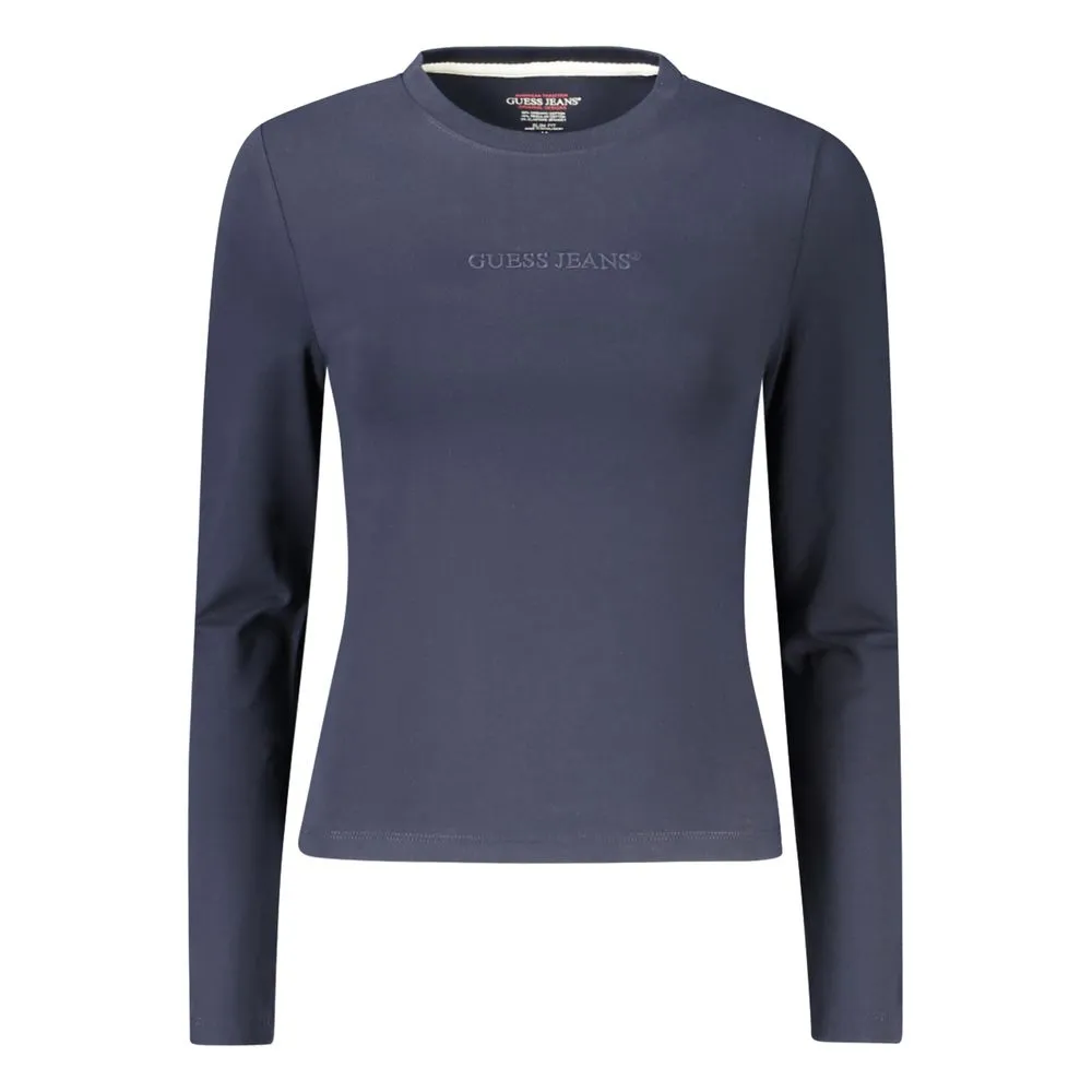 Elevate your style game with this chic Guess Jeans long sleeve T-shirt. Perfect for trendsetters, it boasts an eye-catching embroidery of the iconic logo, reflecting a commitment to both fashion and sustainability with its sumptuous organic cotton blend. Designed to make a statement, this crew neck top seamlessly combines comfort with the audacious spirit of Guess. Step out in confidence and make your mark with this bold blue essential.