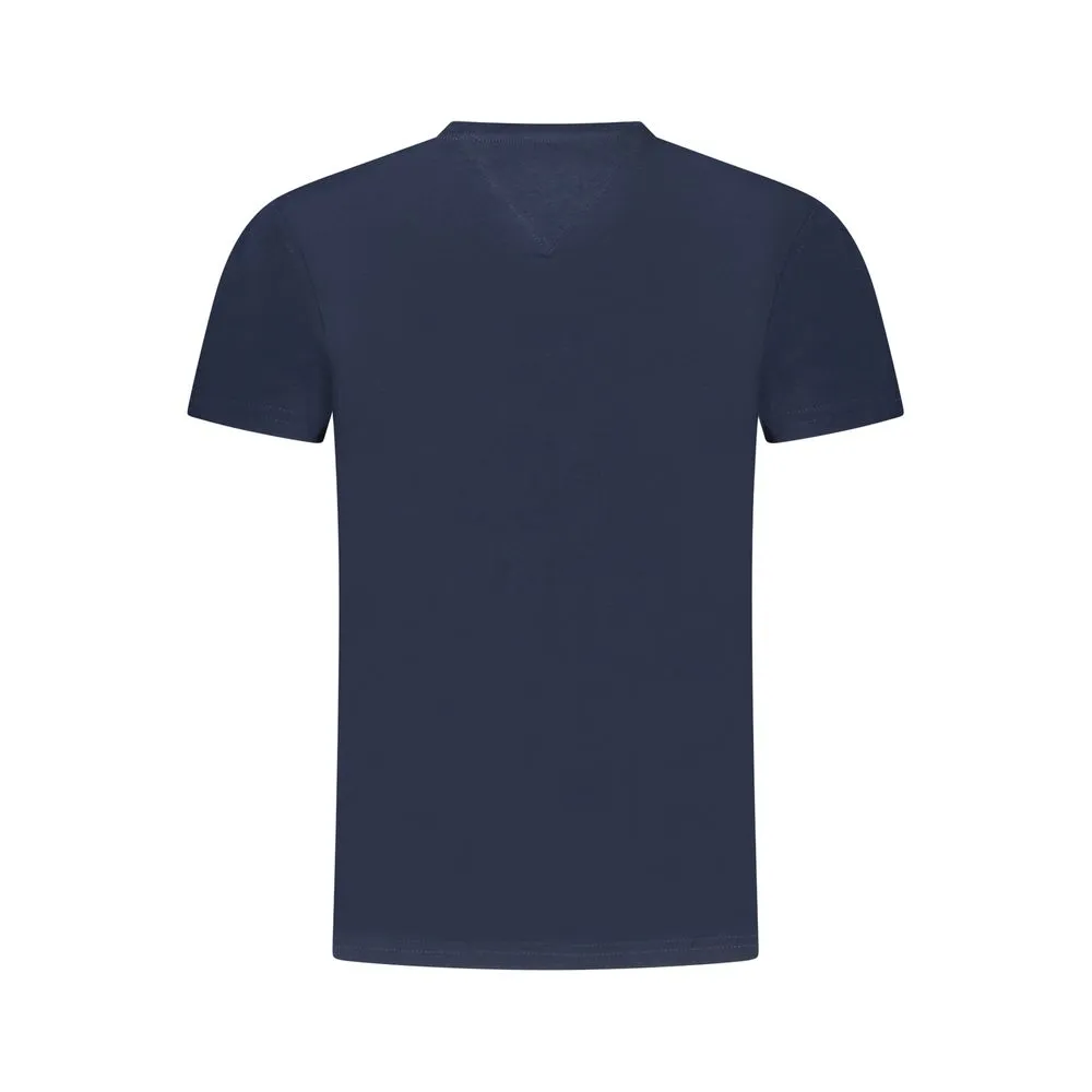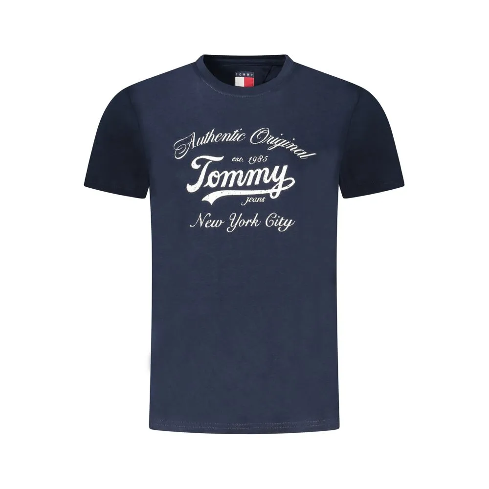Elevate your wardrobe with the environmental consciousness of Tommy Hilfiger. The perfect blend of calm and charisma, this short-sleeved, crew-neck t-shirt boasts a stunning blue hue enhanced by an eye-catching logo print. Crafted from a blend of cotton and 20% recycled viscose, this top doesn’t just elevate your look; it showcases your commitment to sustainable fashion with a nod to the brand’s responsible innovation. Make a trendy statement while supporting eco-friendly initiatives.