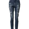 Blue Distressed Washed Logo GRACE Denim Jeans