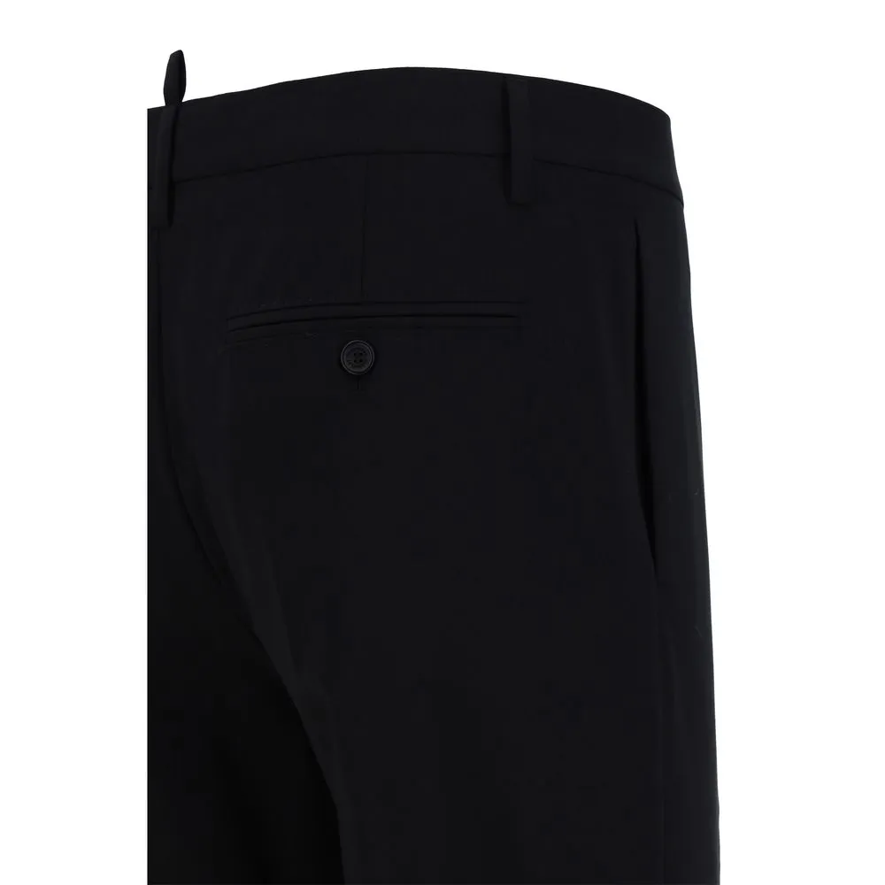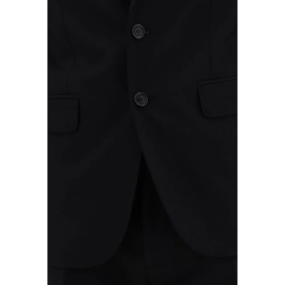 The Dsquared2 virgin wool Suit, consisting of a jacket and trousers, is a timeless classic revisited with the brand’s distinctive style. The blazer jacket, made of pure wool, features a front closure with matching buttons, classic lapels, two welt pockets and a slit pocket on the chest, for a clean and tailored look. The trousers, also in wool, feature a front closure with zip and buttons, two side slash pockets, two welt pockets on the back and belt loops at the waist. An elegant and versatile suit, perfect for formal occasions or modern business looks.