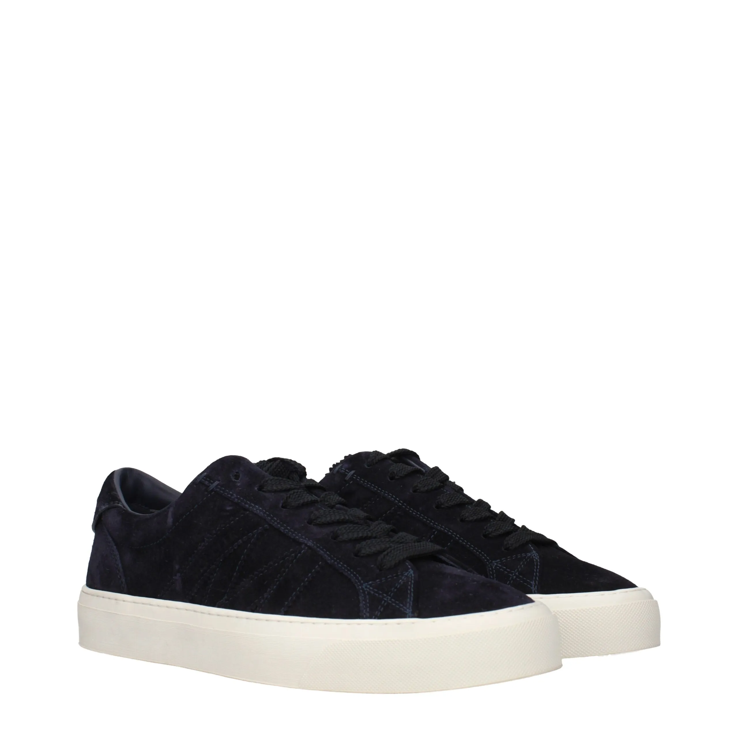 The product with MPN 4M00060M4499772 and code F85390 suede in blue is a sneakers designed by Moncler. It has features like front logo, side logo, back logo.