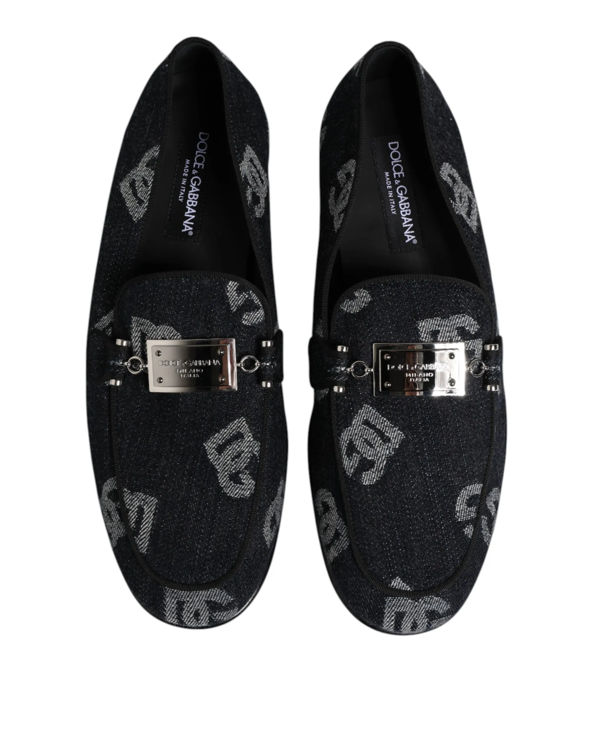 Blue Logo Cotton Loafers Formal Dress Shoes