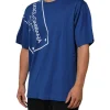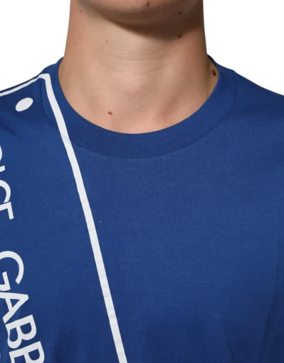 Blue Logo Print Cotton Crew Neck Men T-shirt