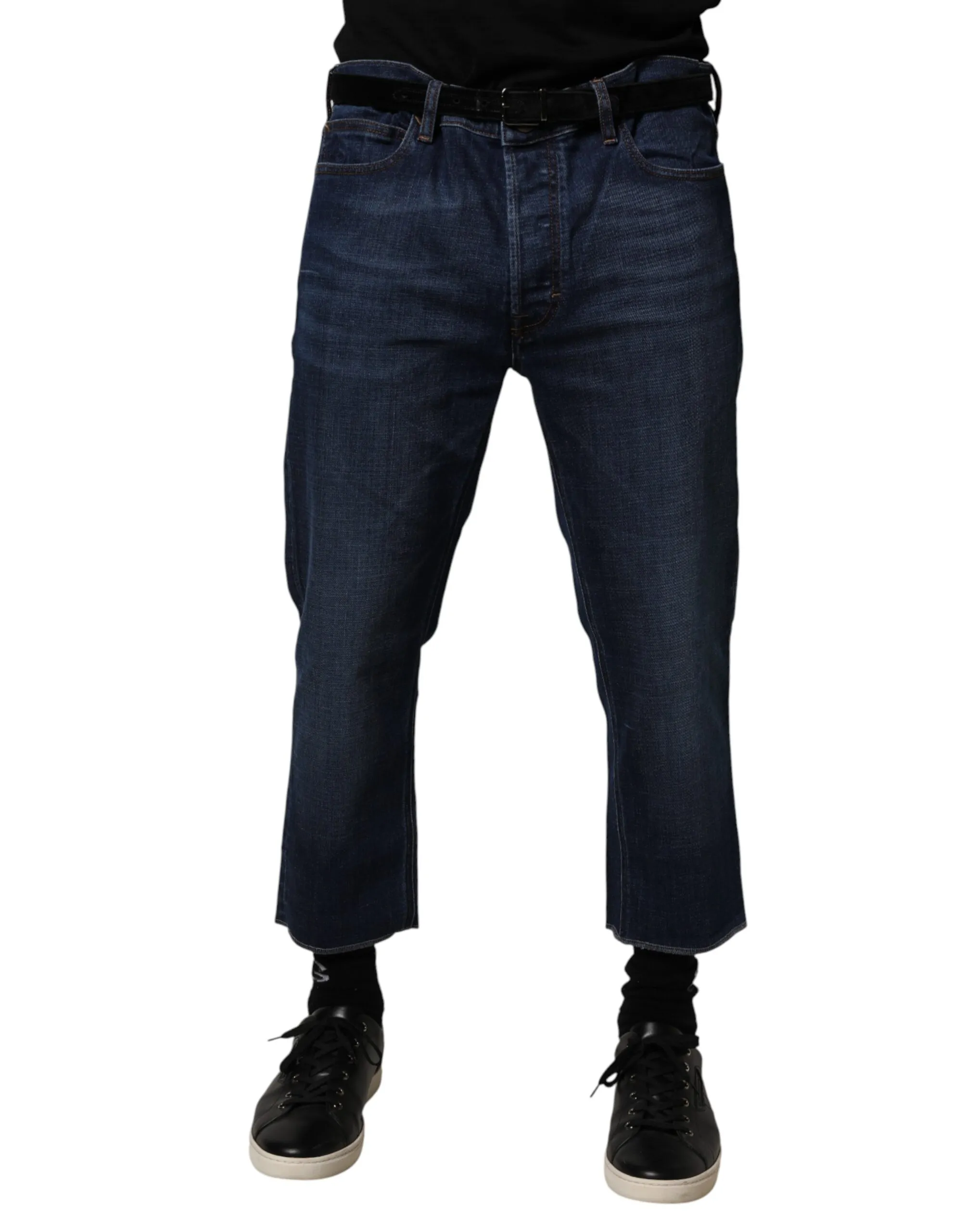 Blue Mid Waist Cotton Men Cropped Denim Jeans Original price was: $259.00.Current price is: $209.00.
