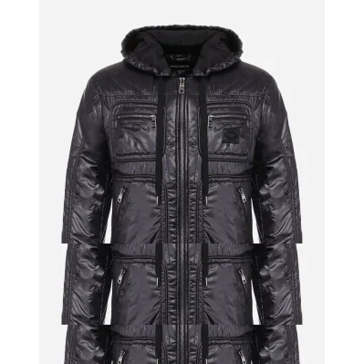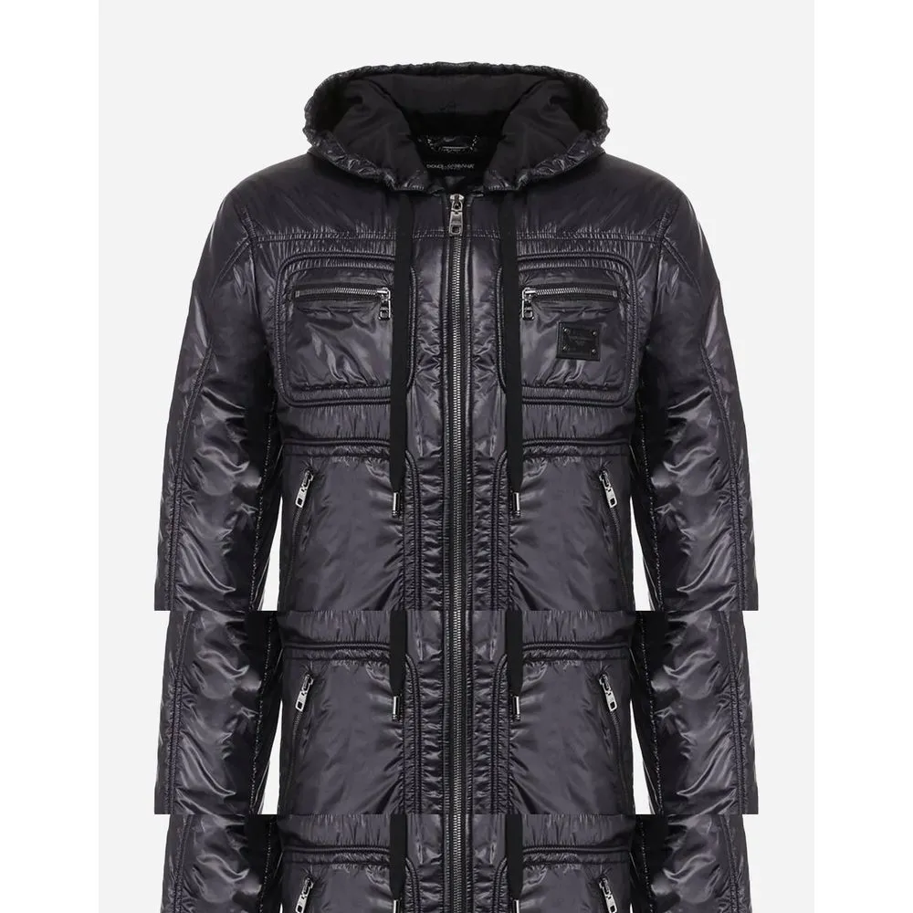 Dolce & Gabbana quilted jacket, crafted with attention to detail, this iconic nylon model features a drawstring hood and a rubberised logo plaque on the front, four front pockets and two inside pockets, all with zip closures. The updated proportions appeal to the younger generation, blending tradition with modern style.