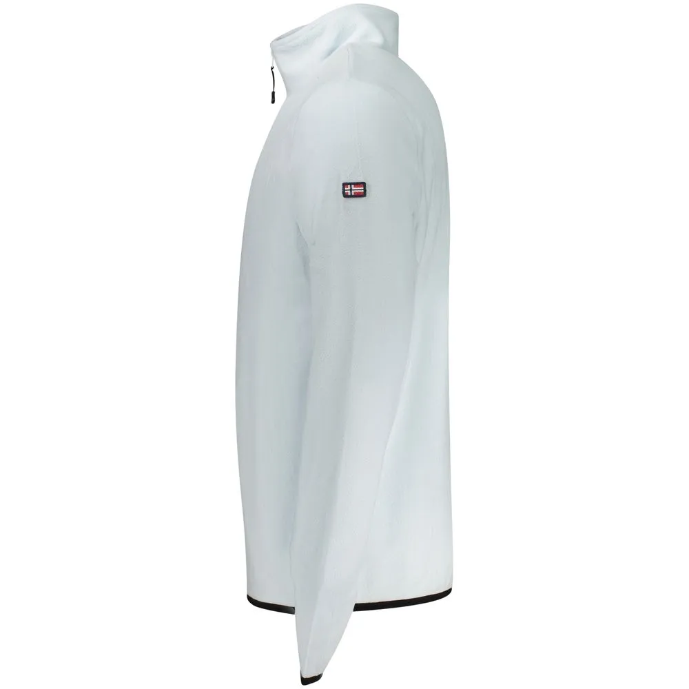 Elevate your layering game with this audaciously stylish ‘Norway 1963’ long-sleeved fleece sweatshirt. Its sleek half-zip design is accented by striking contrast details, while the iconic logo appliqué on the chest adds a statement of luxury to your casual ensemble. Crafted from high-quality polyester, this blue sweater is the quintessence of cool comfort. Dare to stand out.
