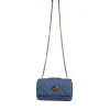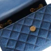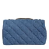 Blue Quilted Denim Leather Crossbody Shoulder Bag
