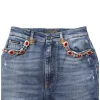 Gorgeous brand new, 100% Authentic Dolce & Gabbana jeans made from cotton features high waist and zipper closure with rhinestone embellishment on pocket.