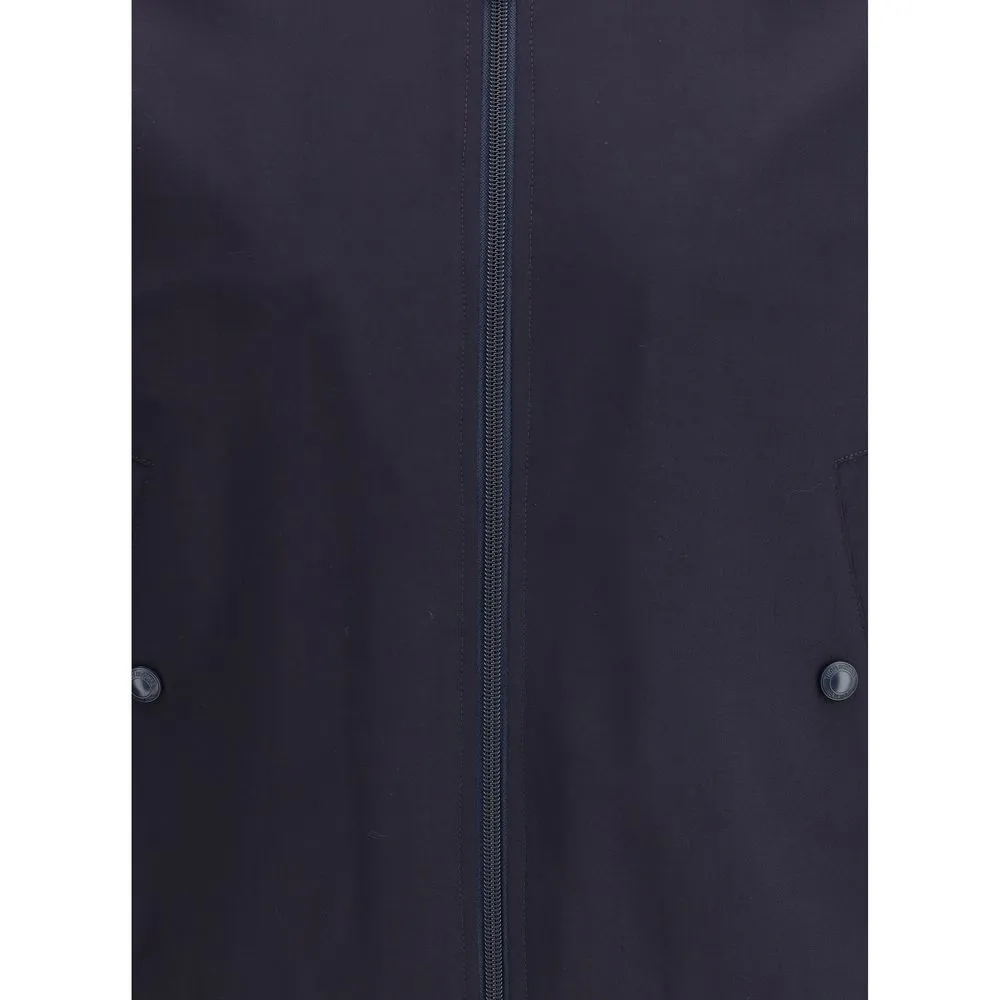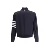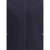 Thom Browne’s wool Jacket features a ribbed collar and convenient front zipper closure, enhancing its modern and comfortable fit. The design is complemented by two side welt pockets, ideal for everyday functionality, while ribbed cuffs and hem ensure a snug fit. The iconic element of the model is the horizontal band placed on the left arm, a distinctive detail that recalls the brand’s contemporary elegance.