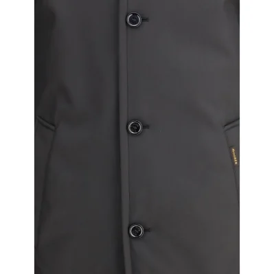 Moorer’s Bond-Wi Down Jacket is a technical and functional single-breasted jacket. Made of windproof and water-repellent 3-layer fabric, it is filled with down for lightweight warmth. The banded stand-up collar closes with a stylish leather frog and snap button. The double front closure combines horn buttons and zipper for maximum protection. The side slider pockets have a hidden metal zipper, combining practicality and refined design.