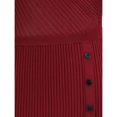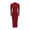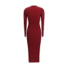 The Ribbed midi Dress is a figure-hugging, feminine piece featuring long sleeves and a front button closure. The cut-out detail on the front adds a modern and sensual touch, enhancing the simplicity of the ribbed design.