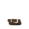 Velvety suede Benny Belt by Khaite is an accessory as versatile as it is refined. Featuring thoughtful detailing, it features a boldly shaped buckle, loop and curved toe, all made of polished gold-plated brass for a touch of bold elegance.
