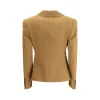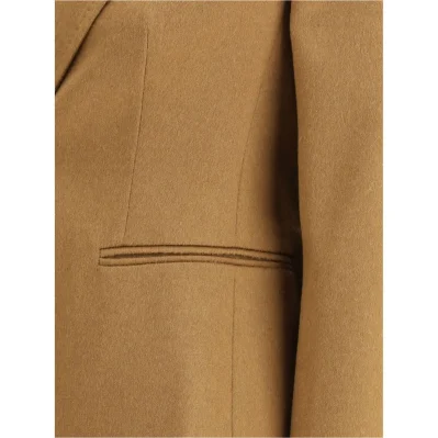 The Glenn Jacket by Max Mara is a cropped single-breasted blazer designed in lightweight zibeline baby camel drap. Its feminine silhouette gently emphasizes the waist, while the lapel collar and lightly voluminous shoulders add structure and elegance. A single button closure enhances its clean lines, complemented by a chest pocket and double welt pockets at the front. Fully lined, it reflects Max Mara’s timeless tailoring with a modern, refined spirit.