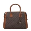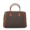 The product with MPN 35F2GM9S8BBROWN and code F85063 fabric in brown is a handbags designed by Michael Kors. It has features like logo, adjustable shoulder, removable shoulder, front detail, removable details.