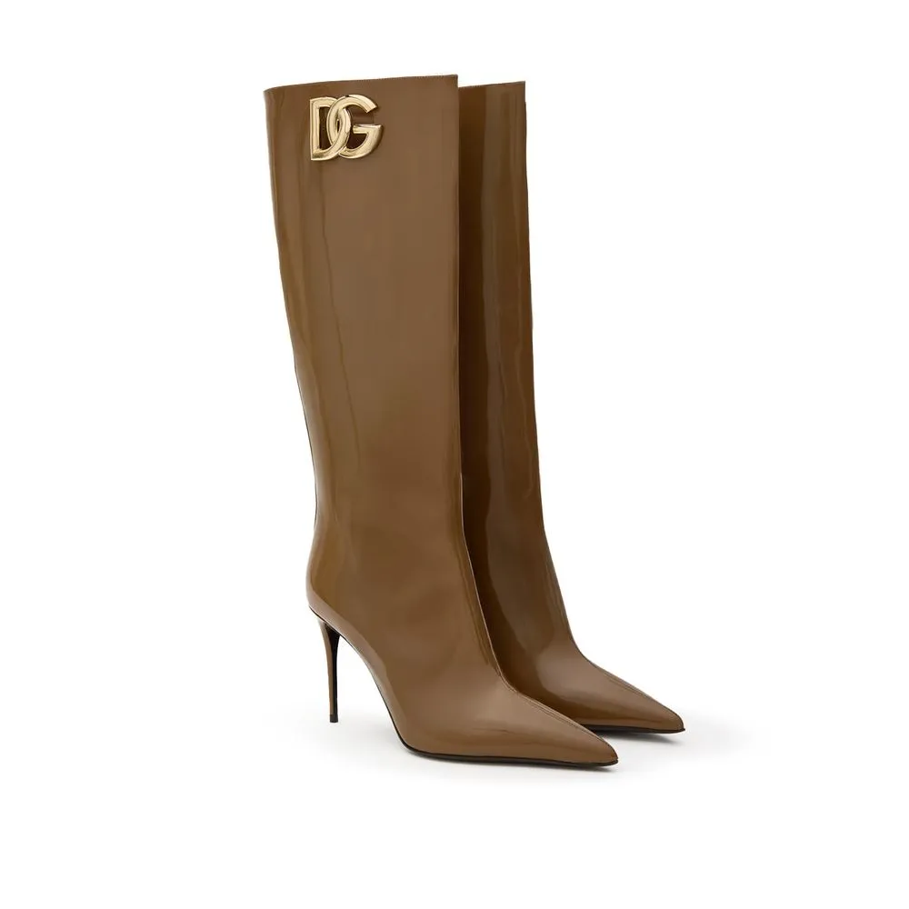 Dolce & Gabbana Brown Patent Leather High Boot. Pointed toe, classic... Read More