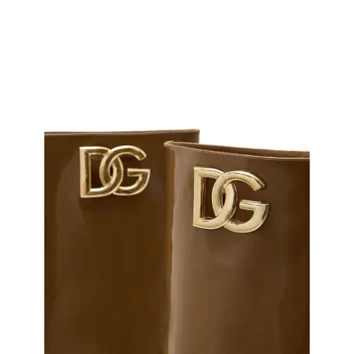 Dolce & Gabbana Brown Patent Leather High Boot.