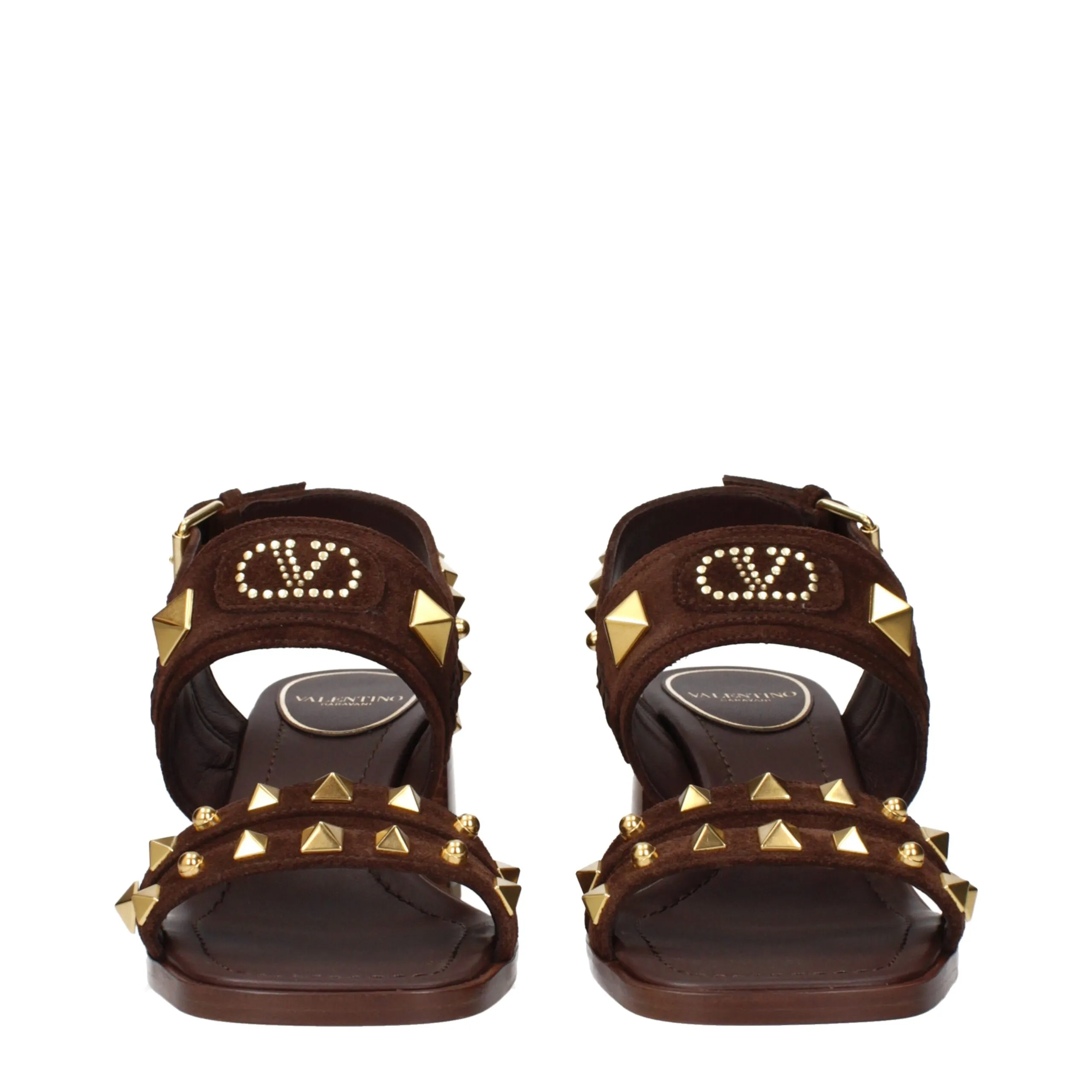 The product with MPN S0LQ7KIEKG8 and code F84685 suede in brown is a sandals designed by Valentino Garavani. It has features like front logo, studs.