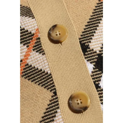 – Composition: 7% Mohair 5% Polyamide 87% Wool – Long sleeves – Ribbed trims – V-neckline – Hand wash – Front brown buttons – Made in Romania – Gender: WOMEN –