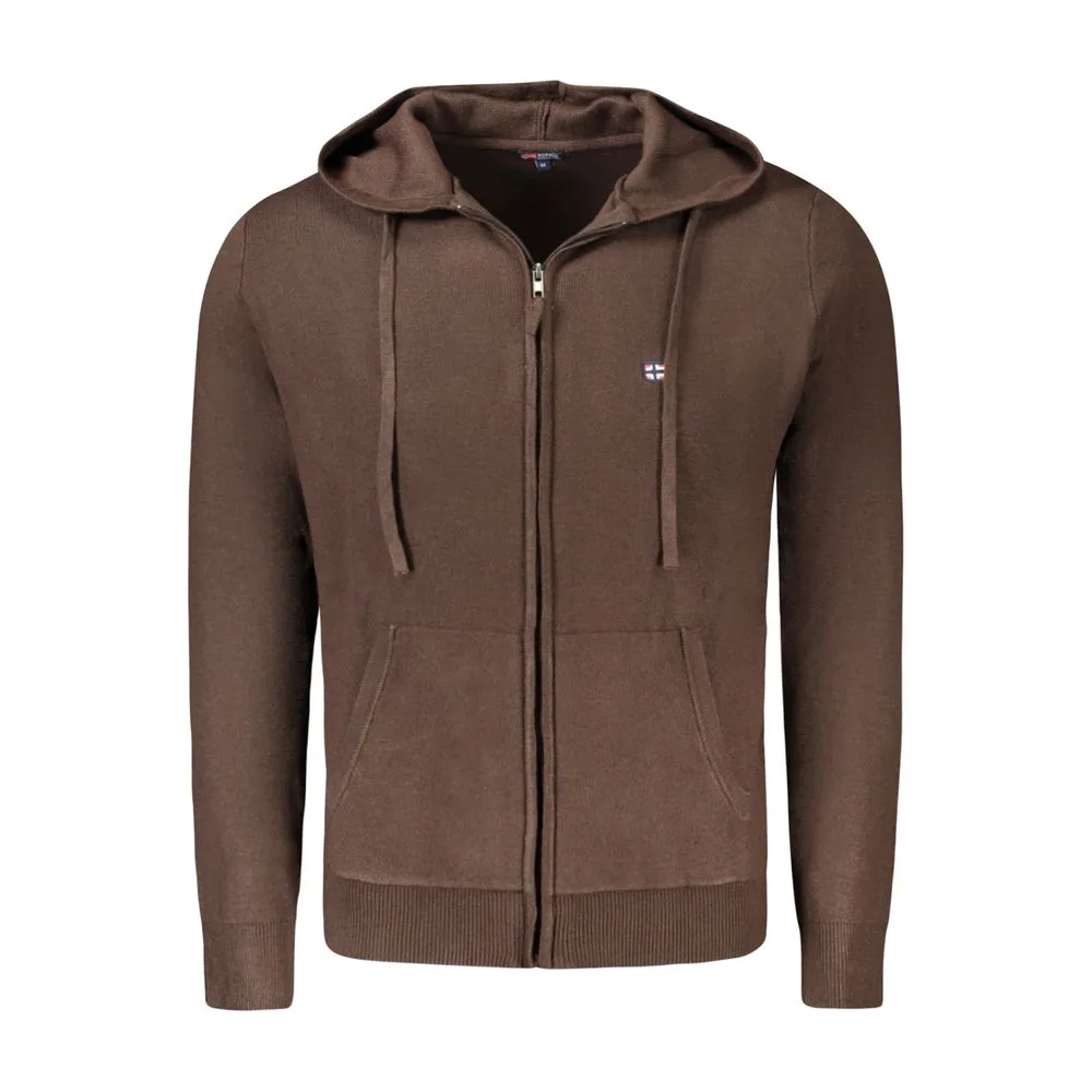 Elevate your wardrobe with the exquisite Norway 1963 long sleeve cardigan – the epitome of luxury and sophistication. Wrapped in the warmth of a rich brown hue, this piece boasts a cozy hood and two central pockets, ensuring both style and practicality. The delicate embroidery and striking logo add a touch of refined elegance, while the premium blend of polyester, viscose, acrylic, and polyamide promises unrivaled comfort. Crafted with precision, this garment is a testament to enduring style and superior quality, hailing from the heart of BD.