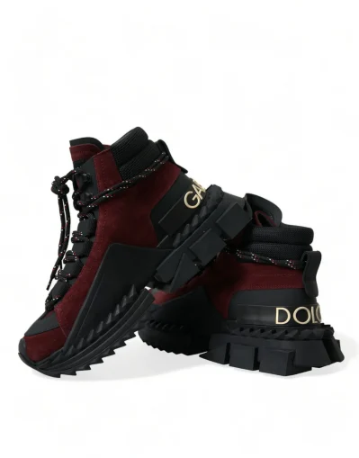 Gorgeous brand new with tags, 100% Authentic Dolce & Gabbana Super King split burgundy leather high top sneaker.