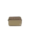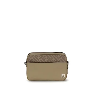 Fendi’s Camera Case Squared FF Shoulder Bag is a compact and refined model made of smooth beige leather combined with iconic FF canvas in the same tone. Embellished with a metal FF appliqué, it features an exterior flat pocket and a zippered main compartment. The interior is lined, while metal accessories are finished with palladium. The technical fabric crossbody strap, decorated with FENDI lettering, is adjustable and removable for versatility of use.