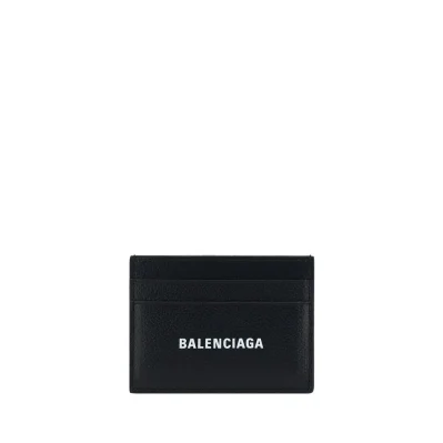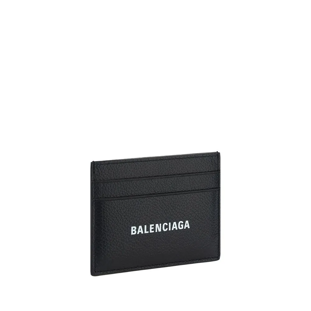 Calfskin Card Holder by Balenciaga, card slots on front and back, iconic brand monogram contrasting on front.