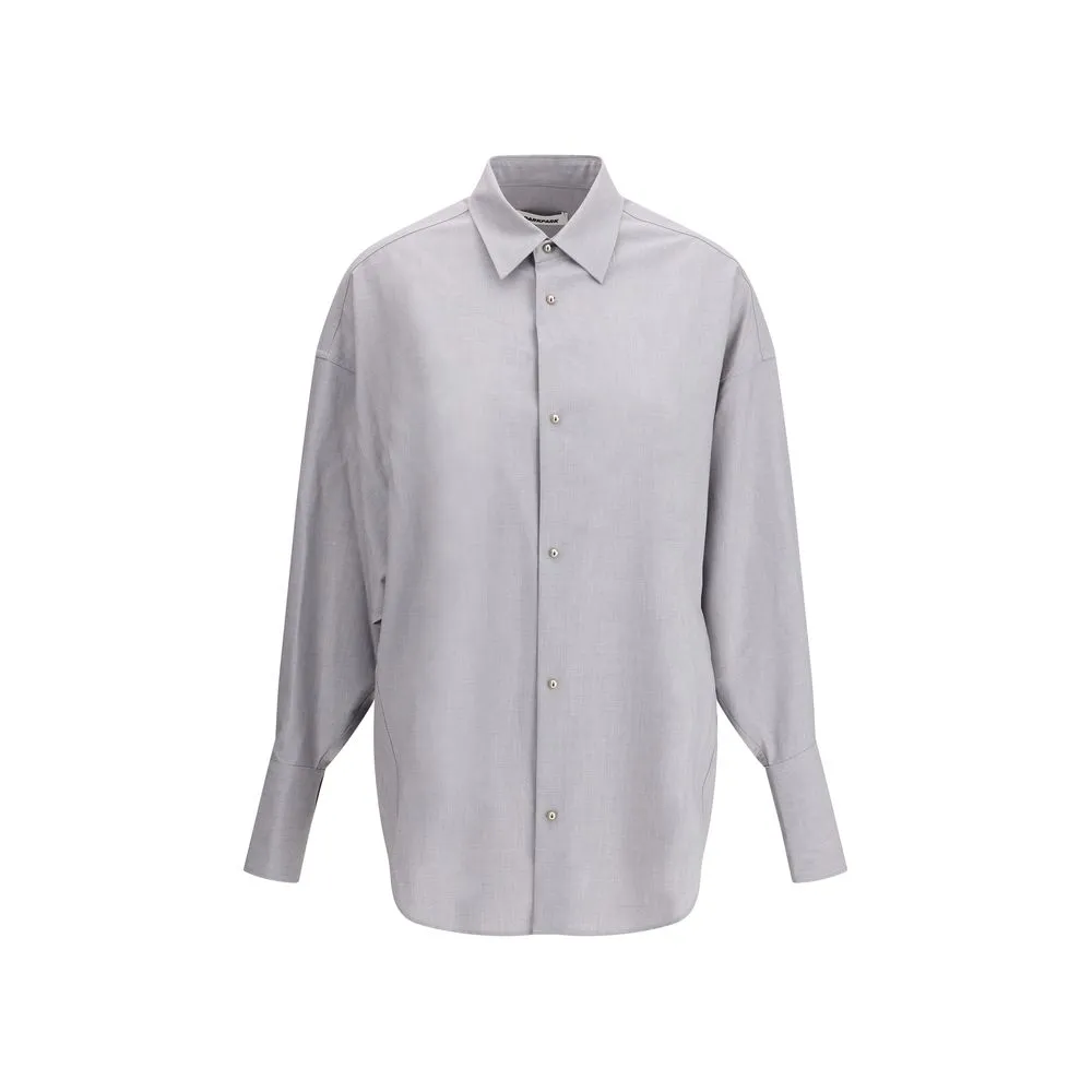 Darkpark’s Carla Shirt is a garment with a bold, contemporary style. Made in an asymmetrical oversize cut, it features a pointed collar and a snap button closure that emphasize its modern aesthetic. The wide sleeves add volume and character, making this shirt a bold and versatile choice, perfect for high-impact urban looks.