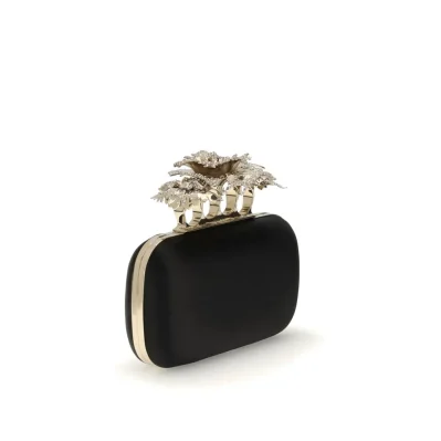 The Carnation Knuckle Clutch by McQueen features a black silk... Read More