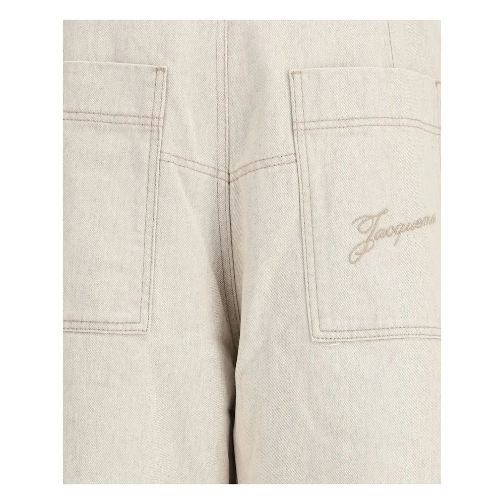 The Carré de-Nîmes cargo Jeans bring a contemporary twist to a utility classic. Crafted from soft cotton and hemp denim, they feature a high waist with engraved metal button closure and belt loops. Wide, straight legs are reinforced with stitched details at the knees, emphasizing durability and style. Oblique front pockets, applied side cargos, and laser-printed back pockets combine practicality with urban edge, while an embroidered patch on the back delivers a refined signature touch. A perfect balance between modern design and workwear heritage.