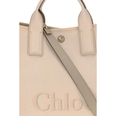 Chloé’s Carry Handbag is a refined and versatile accessory made of cotton with contrasting leather details that accentuate its elegance. The snap top closure provides practicality, while the double flat handles and leather extension on the side panels add a sophisticated touch. The brand’s iconic monogram is visible on the front and back, creating a distinctive appeal. The removable and adjustable leather shoulder strap also allows it to be carried on the shoulder, increasing versatility. Inside, a welt pocket helps keep smaller items tidy, while the brand’s signature on the side panels completes the look with a classy detail.