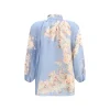Zimmerman’s Cascadian Blouse by Zimmerman is a delicate, feminine piece featuring puff sleeves with elastic cuffs that allow you to adjust the length to your liking. At the front, drawstring button loops with crochet buttons add a handcrafted touch, while the refined lace finish at the neck embellishes the design. Complemented by an elegant print throughout, this blouse is perfect for a romantic and sophisticated look.