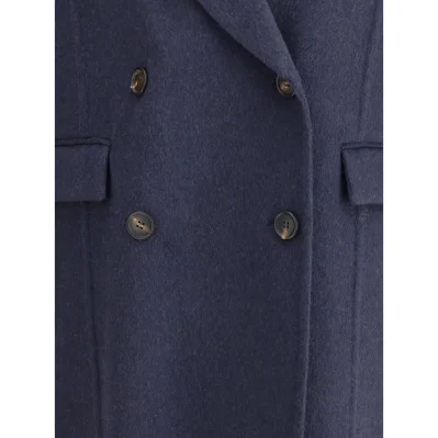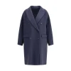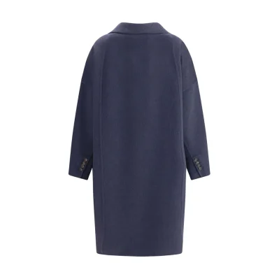 Brunello Cucinelli’s cashmere Coat expresses elegance and quality craftsmanship in every detail. Featuring a wide peaked lapel and a double-breasted closure with contrasting buttons, it has two welt flap pockets applied on the front. The monochrome design, over-fit and mid-length make it a sophisticated and versatile garment, perfect for completing refined looks in the cold season.