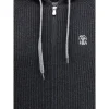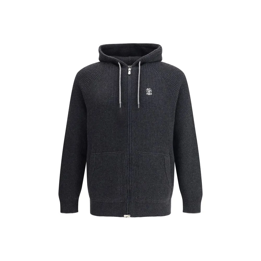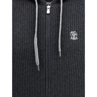 Cashmere Hoodie by Brunello Cucinelli combines elegance and comfort with fine ribbing. Featuring a drawstring hood, welt pockets and ribbed trim, it is distinguished by a contrasting embroidered logo on the chest. The monochrome pattern and regular fit complete a refined and versatile garment.