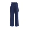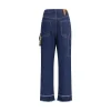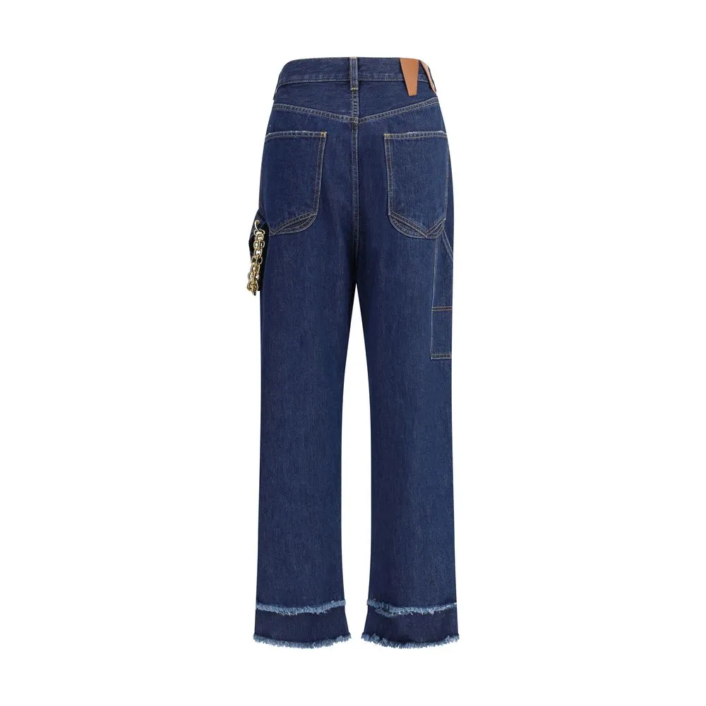 Darkpark’s chain Jeans reinterpret denim with a bold, contemporary aesthetic. Featuring a front button-and-zip closure, they feature a loose five-pocket design and a distinctive detail: a gold chain appliqué at the waist. The raw-cut bottom adds a raw and urban touch, perfect for an impactful look with a strong character.