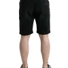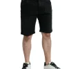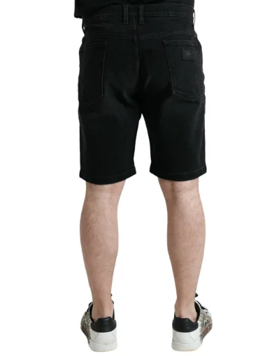 Black Cotton Stretch Bermuda Denim Shorts