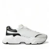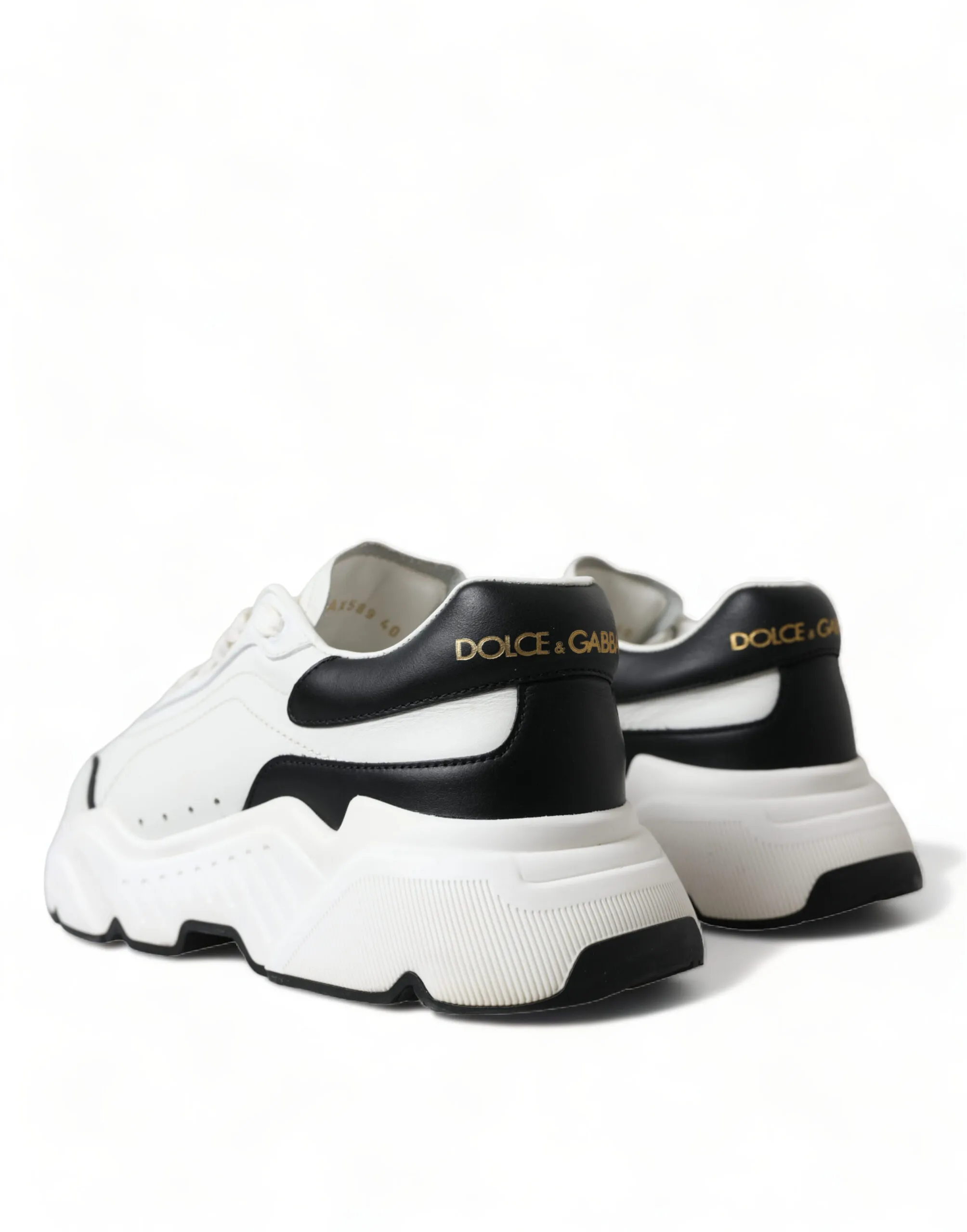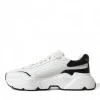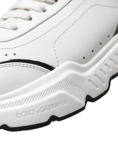 Gorgeous brand new with tags, 100% Authentic Dolce & Gabbana sneakers made of leather, a logo on the outside, a pull tab on the back, a logo patch on the tongue, an almond-shaped nose, a flat rubber sole and laces with logo tape.