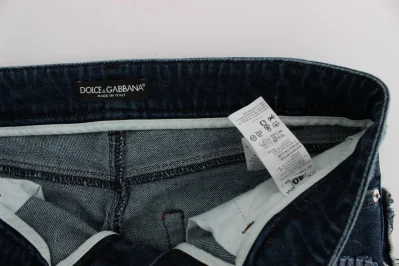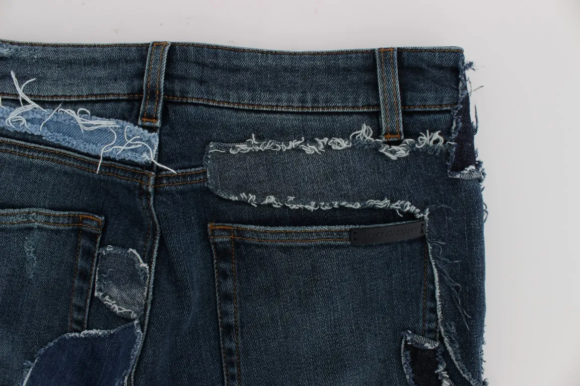 Gorgeous brand new with tags, 100% Authentic DOLCE & GABBANA blue denim stretch patchwork 3/4 jeans shorts.