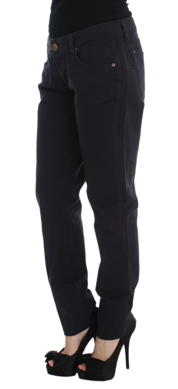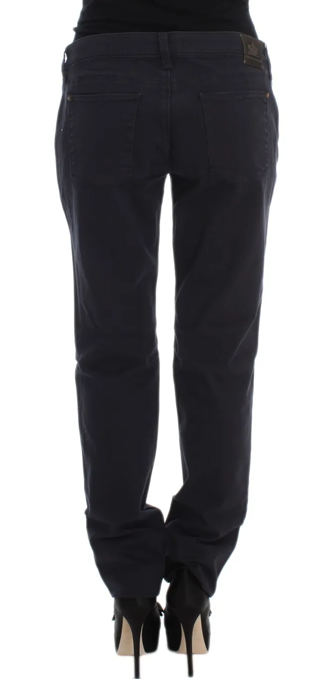 Blue Cotton Blend Casual Fit Pants