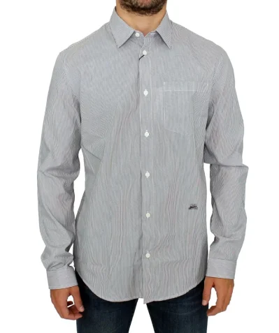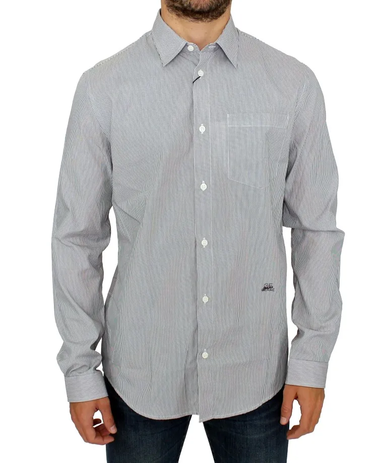 Absolutely stunning, 100% Authentic, brand new with tags GF Ferre Jeans Gray Striped cotton casual shirt.