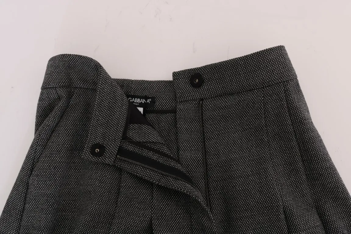 Gray Wool High Waist Mini Shorts