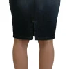 Dark Blue Washed Mid Waist Pencil Cut Denim Skirt