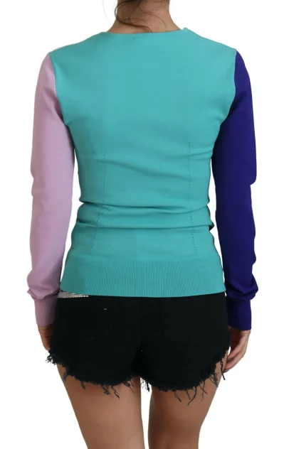 Multicolor V-neck Viscose Long Sleeves Sweater