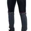 Blue Two Tone Tattered Cotton Slim Denim Jeans
