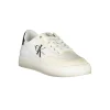 Step into sustainable style with these chic lace-up sneakers by Calvin Klein, featuring eye-catching contrast details and a distinctive logo print. Not only are these sneakers fashion-forward, they are eco-conscious with 50% recycled thermoplastic rubber soles. Perfect for adding a touch of sophistication to your casual wear.