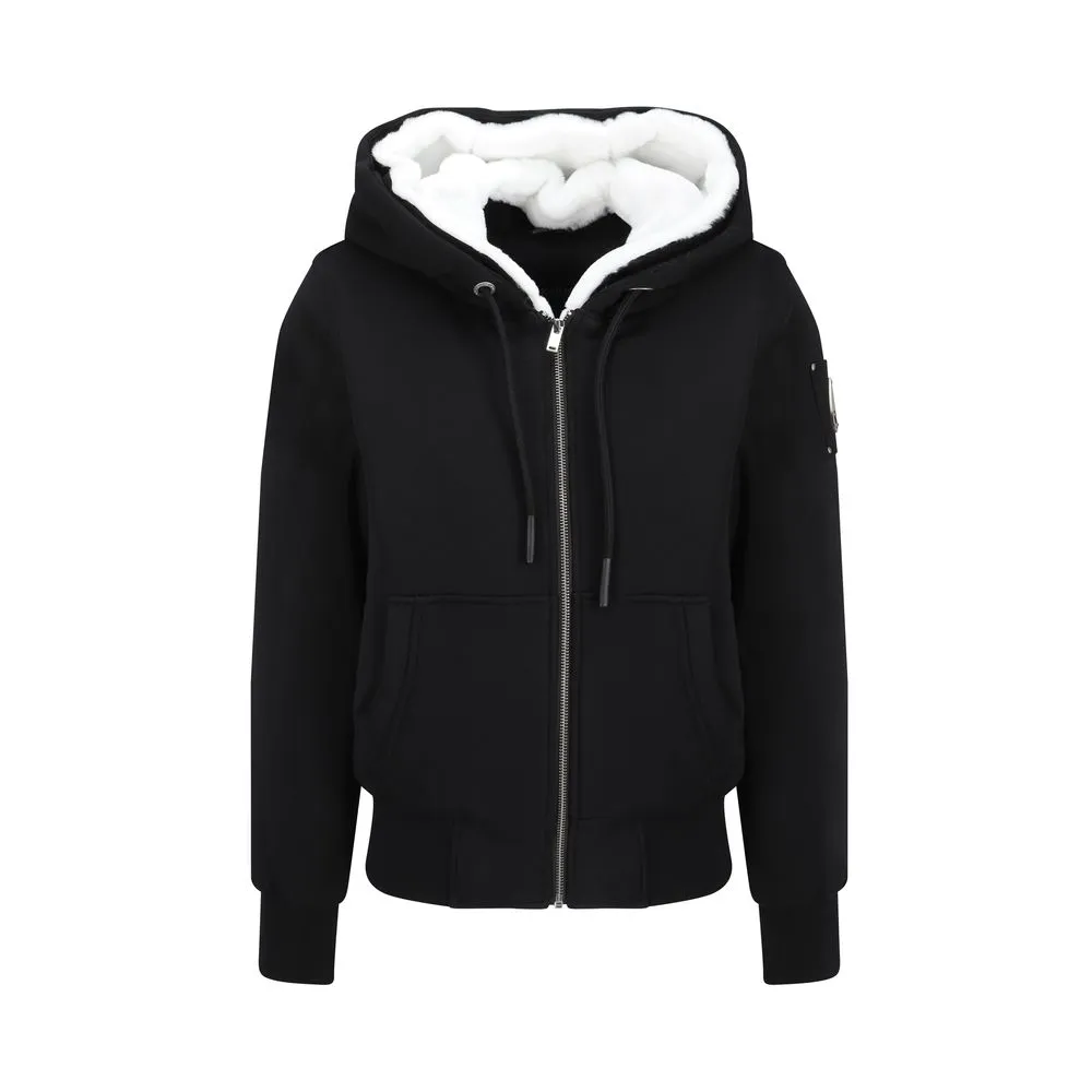 Cotton Classic Bunny Jacket by Moose Knuckles, design with drawstring-adjustable hood, front zipper closure, two patch pockets on front, iconic three-dimensional brand monogram applied on left sleeve, faux fur padding, monochrome pattern, regular fit.