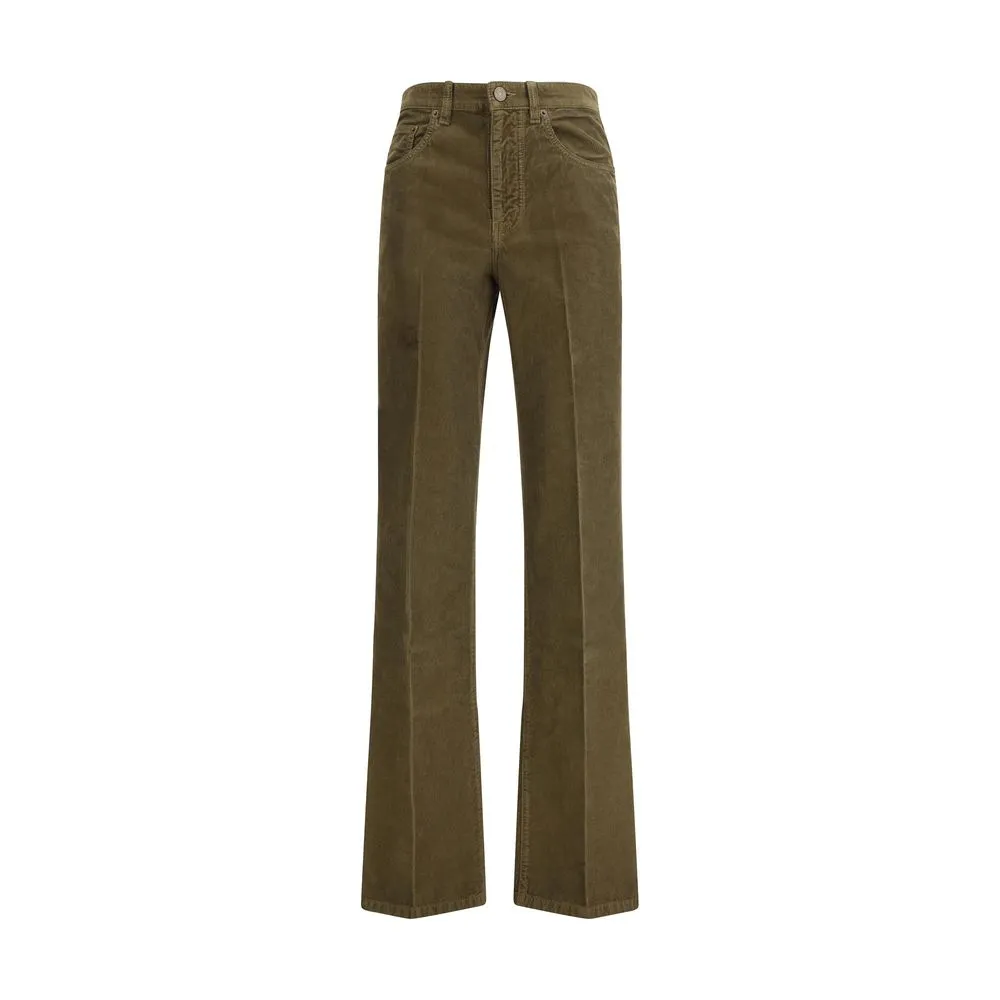 Corduroy Clyde Pants by Saint Laurent revisit classic aesthetics with a touch of rock elegance.Featuring a front zipper and button closure,they follow a five-pocket construction with belt loops at the waist.Completing the design is the leather jacron with Saint Laurent Paris embossing,a hallmark of the Maison.