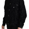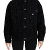 Cotton Black Leopard Long Sleeve Denim Jacket