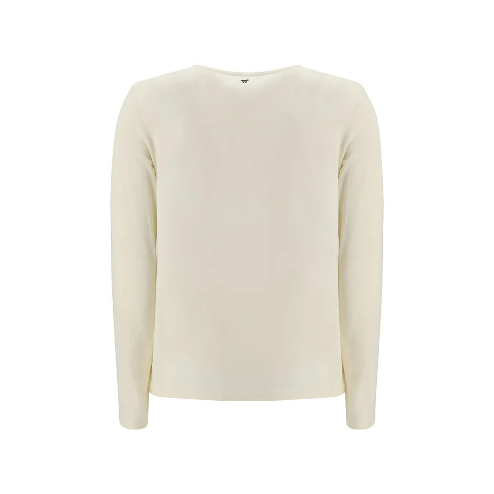 The fitted stretch jersey Renoir T-shirt by Weekend Max Mara is crafted from stretch cotton jersey for a figure-hugging silhouette. Featuring long set-in sleeves, a crew neckline, and embroidered collection details on the front, it’s finished with the brand’s signature butterfly logo on the back of the neck — a refined essential for effortless everyday wear.